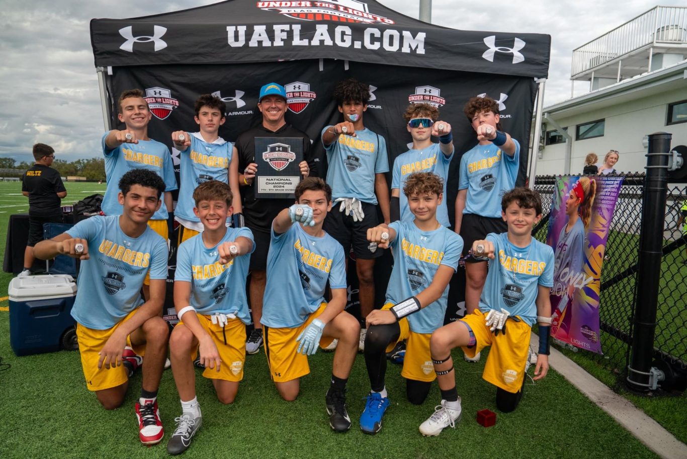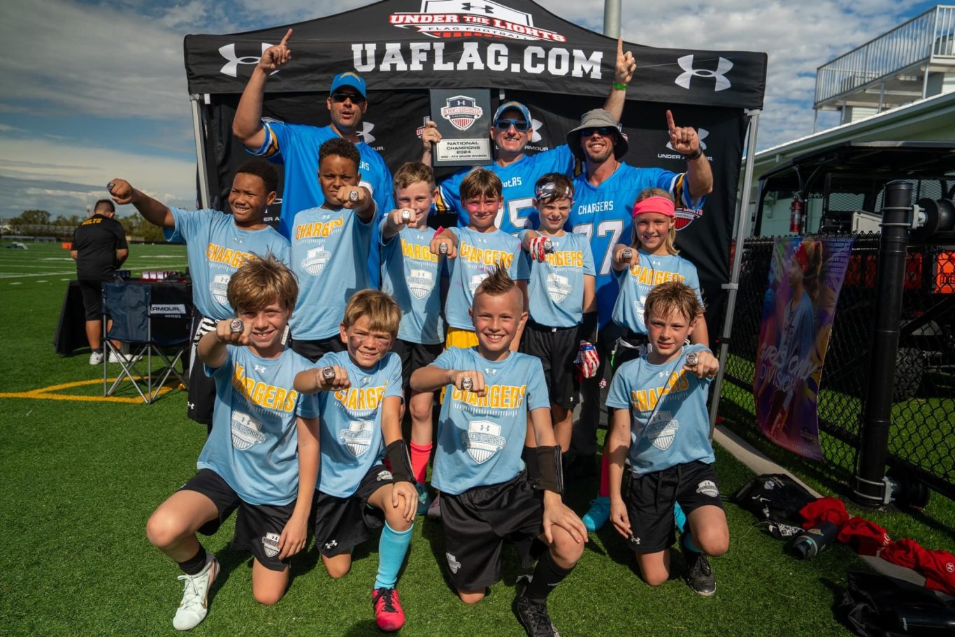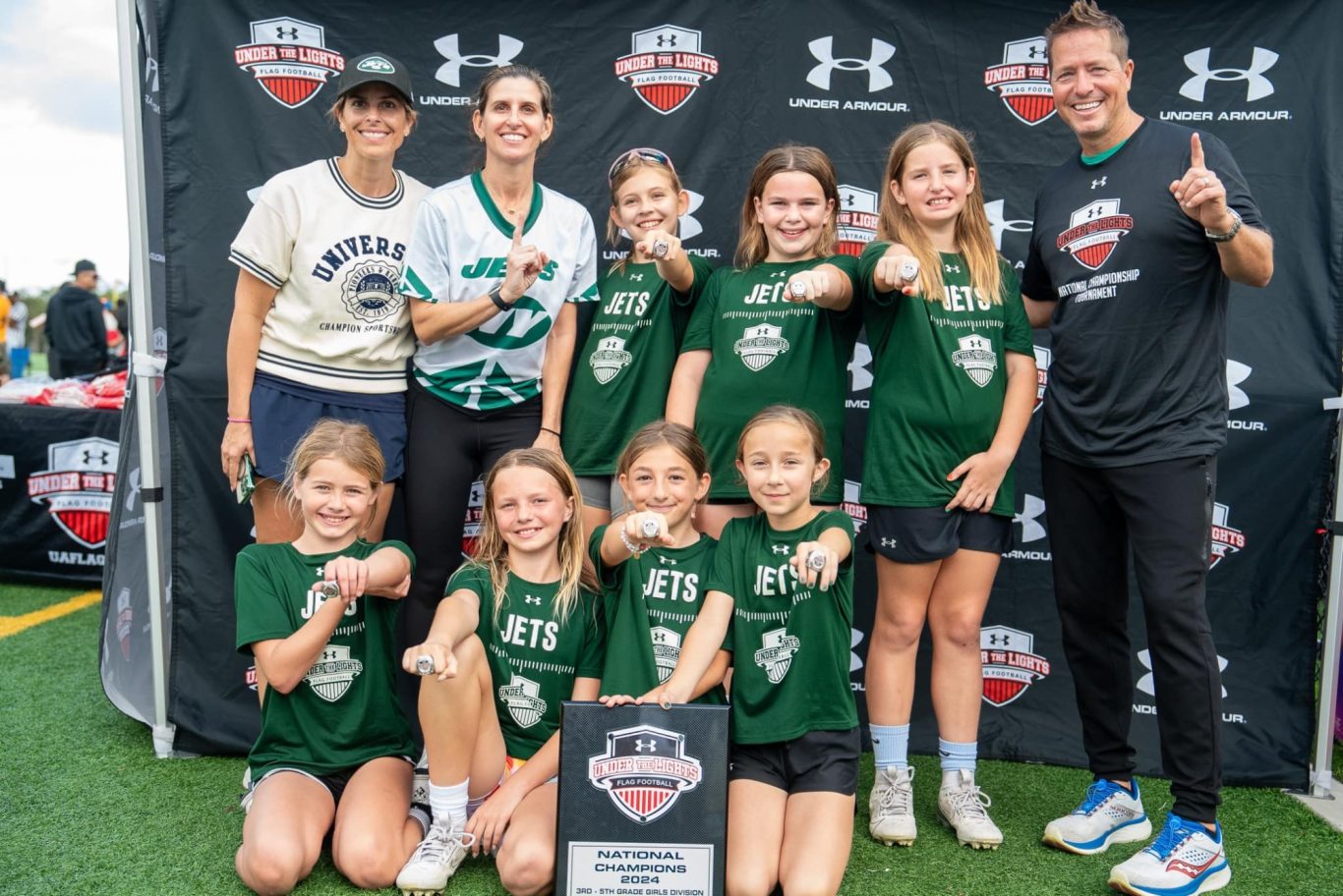 Under the Lights is a national youth flag football league for kids in Pre-Kindergarten - 10th grade, with the emphasis on promoting a competitive, confidence building, non-contact experience for both boys and girls of all skill levels.